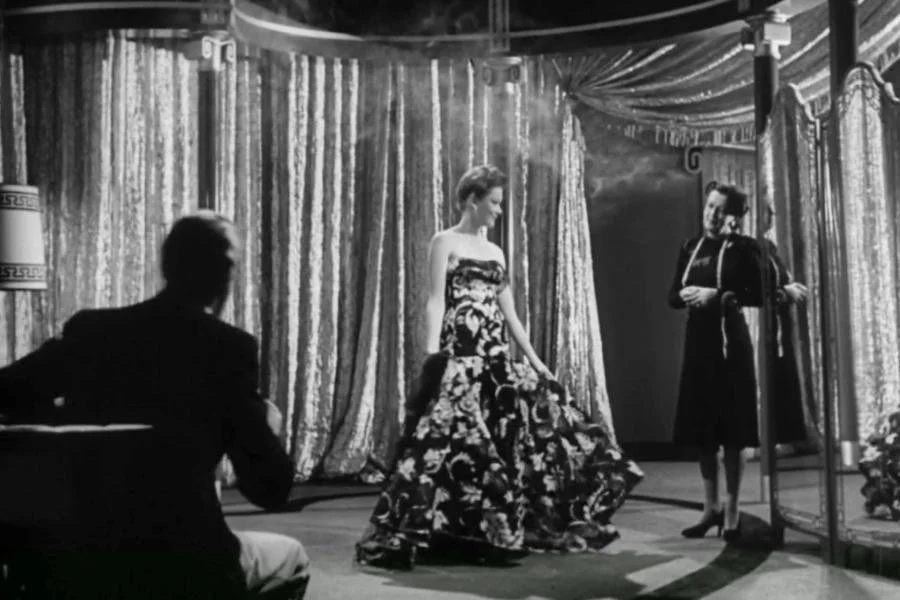As Waldo Lydecker continues to tell the detective the story, we see a number of evening gowns, worn by Laura for her after work social activities.