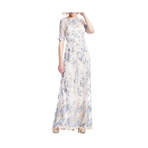 The all-over embroidered floral and lace detail is stunning. This vintage inspired dress also has the 1950s sheer bodice detailing.